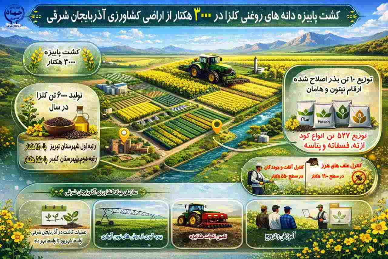 آدینه پرس ، مدیر امور زراعت سازمان جهاد کشاورزی استان آذربایجان شرقی از کشت پاییزه کلزا در 3000 هکتار از اراضی کشاورزی استان خبر داد.