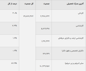 جمعیت ایران در سرشماری ۱۳۹۵ مرکز آمار به تفکیک آخرین مدرک تحصیلی