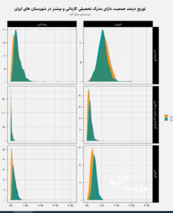 تفاوت میزان تحصیلات در جمعیت شهری و روستایی به خوبی در منحنی توزیع درصد جمعیت تحصیلکرده در شهرستانهای ایران قابل مشاهده است