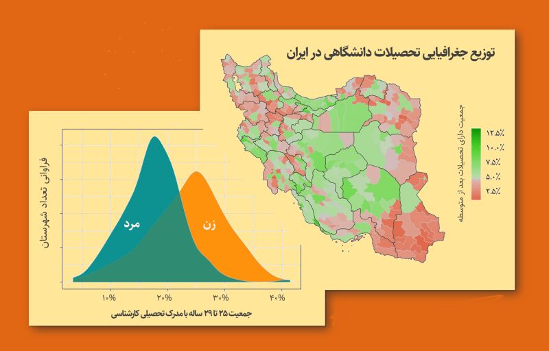 چنانچه در مقایسه تحصیلات زنان و مردان مشاهده میشود زنان شهری دارای تحصیلات کارشناسی، تنها گروهِ جمعیتی هستند که تفاوت زن و مرد در آن با دیگر گروههای جمعیتی همخوان نیست. در دادههای سرشماری ۱۳۹۵ درصد زنان شهری دارای مدرک کارشناسی، ۱۲% از جمعیت مردان شهری با مدرک کارشناسی بیشتر است. توجه به این تفاوت در فهم ریشه برخی تحولات اجتماعی در سالهای اخیر راهگشا خواهد بود.