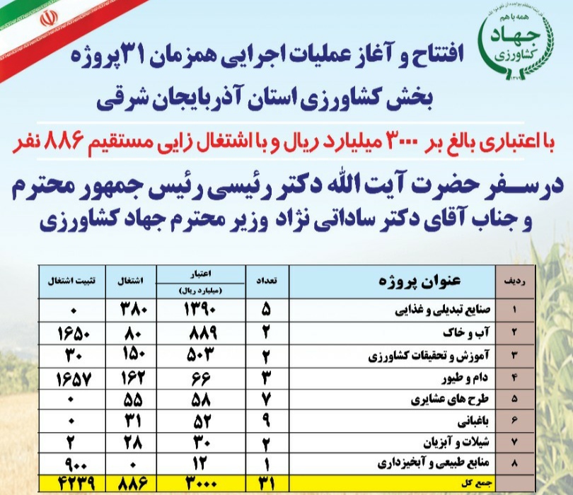 افتتاح و بهرهبرداری همزمان ۳۲ پروژه بخش کشاورزی آذربایجان شرقی توسط وزیر جهاد کشاورزی