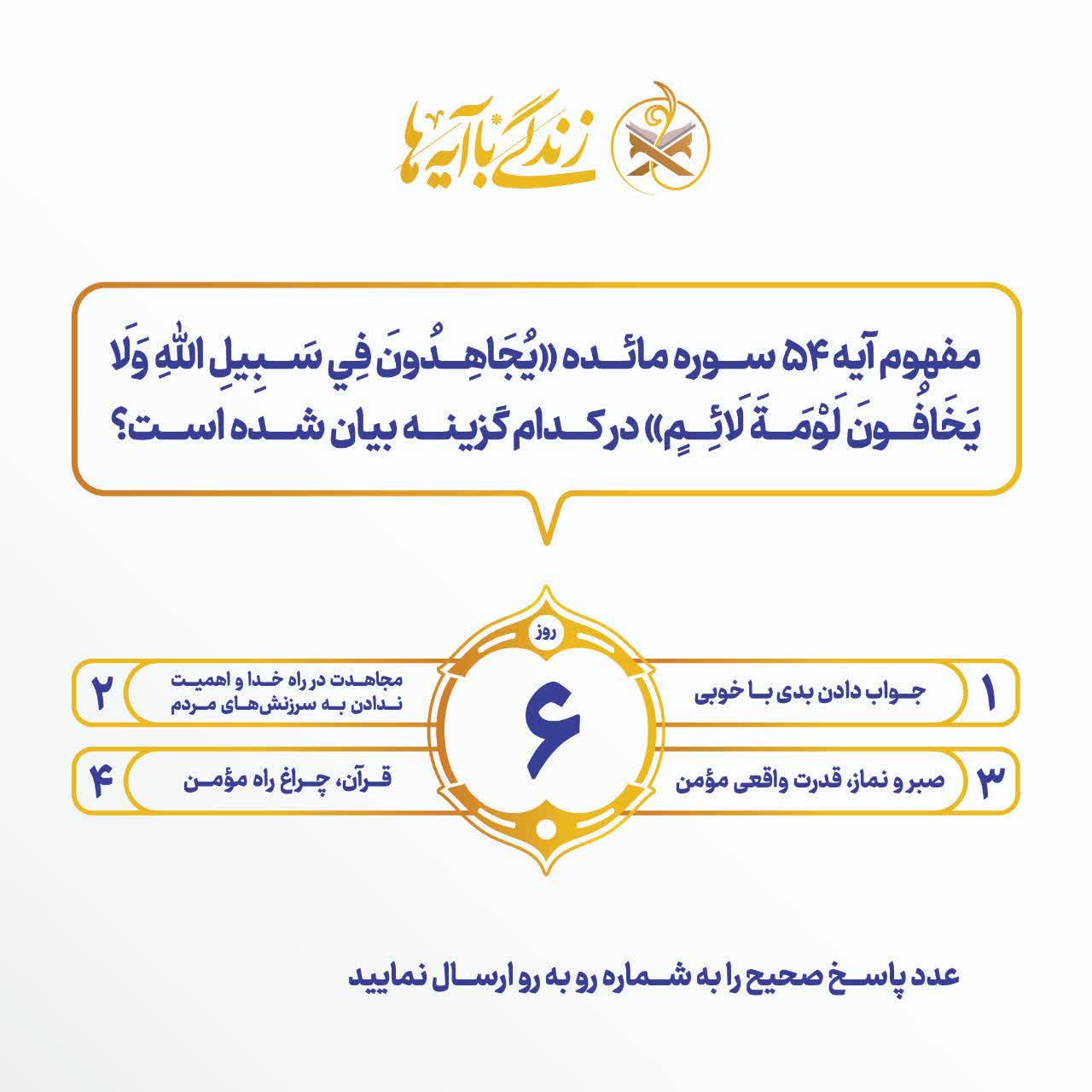 اعلام سوال روز ششم مسابقه پیامکی زندگی با آیه ها